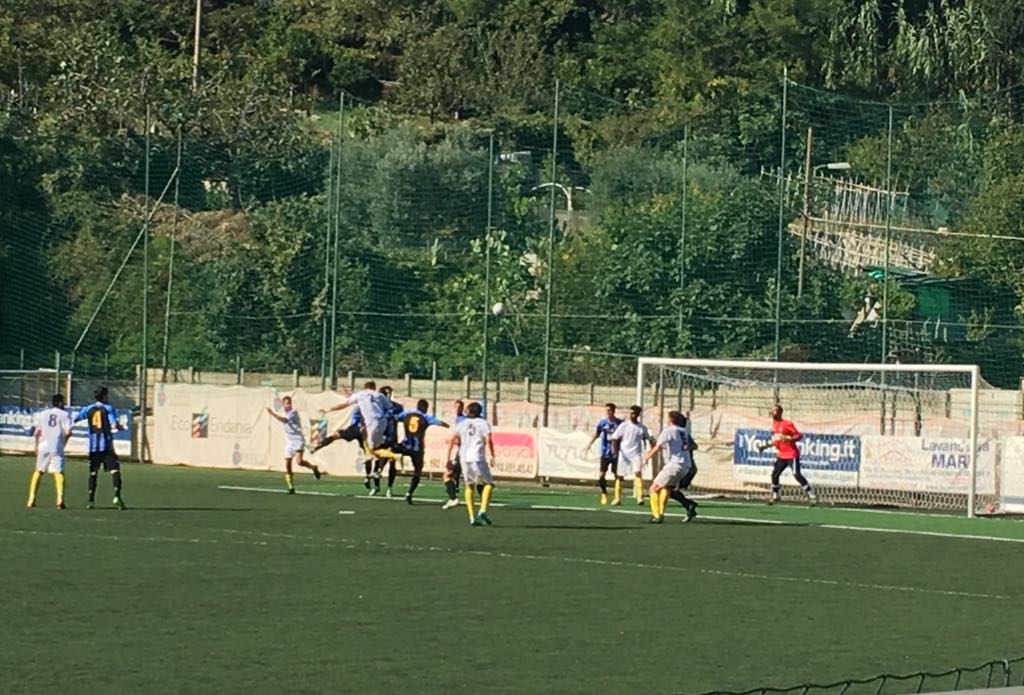41': Ora il Borzoli va vicino al 2-0. Azione spettacolare di Mazzei a sinistra che salta tre avversari, palla a Vavalà salvata sulla linea, sulla respinta salvataggio in extremis anche su Mendez.