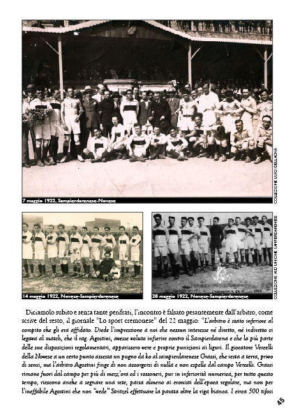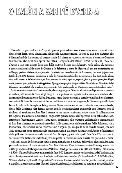 La storia biancorossonera, con purtroppo qualche pennellata di nero di troppo durante il ventennio, racconta il calcio a San Pier d’Arena dal tempo dei pionieri al 1946 anno della nascita dell’Uc Sampdoria. Le vicende sportive spesso drammatiche finiscono inevitabilmente per ricalcare quelle di San Pier d’Arena che passa sciaguratamente dall’essere la Manchester italiana all’attuale quartiere cui hanno grammaticalmente violato pure l’antico nome. Dal 1898 si susseguono nel tempo le vicende della Pro Liguria, della Sampierdarenese, della Dominante e del Liguria. Il periodo dal 1920 al 1927 è quello di massimo fulgore quando a scàtoa de pìloe è il terreno di tanti epici scontri, tra la squadra che rappresenta San Pier d’Arena e ne difende l’onore calcistico e le due genovesi Andrea Doria e Genoa, le due di Milano e di Torino, ma anche il Livorno, la Pro Vercelli, il Casale e il Bologna, vale a dire l’aristocrazia calcistica del tempo.