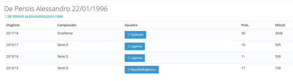 L'U.S.D. RIVAROLESE 1919 comunica di aver raggiunto l'accordo per la prossima stagione con il calciatore ALESSANDRO DE PERSIIS, attaccante classe 1996 proveniente dalla Sestrese. Alessandro completerà il reparto offensivo di mister Fresia e tutta la Società dandogli il benvenuto augura a lui una stagione ricca di soddisfazioni.
