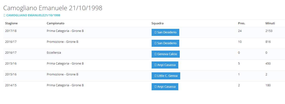clicca qui per le carriere dei dilettanti liguri