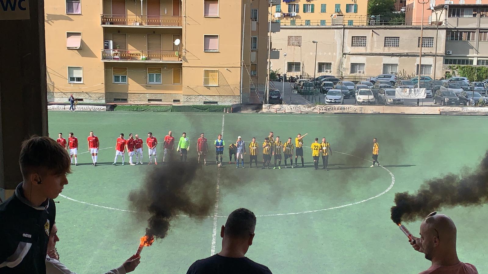 30’: Rotunno al Volo! Palla alta sulla traversa! Cross dalla trequarti di Rena, sul secondo palo il nove del Masone calcia sul fondo! Prima nitida chance per riaprire la partita.