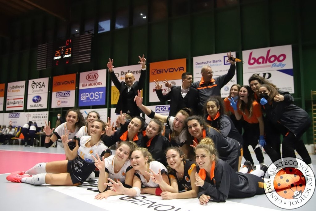 Con la preziosissima vittoria per 3-0 contro Cuneo nell'ultima giornata della prima fase di campionato di B2 la Serteco Volley School Genova si assicura un sorprendente secondo posto nel girone A1, a un punto soltanto dalla prima in classifica. L'attuale posizione in graduatoria garantisce l'accesso ai nuovi play-off promozione introdotti recentemente dalla Fipav. Un risultato eccellente e forse inaspettato a inizio stagione quello delle giovanissime arancionere, un gruppo quasi totalmente composto da ragazze del settore giovanile tutte Under 20.