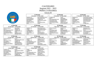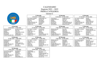 PRIMA CATEGORIA Ecco tutti i calendari