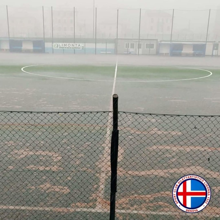 Il terreno di gioco del Ligorna patisce gli allagamenti del vicino Bisagno, i tombini sempre strapieni, la montagna che carica acqua e butta giù fango.