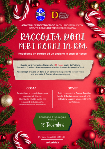 Il Ceriale Progetto Calcio in collaborazione con L’ Istituto Domenico Trincheri di Albenga lancia una raccolta doni per i nonni in RSA.