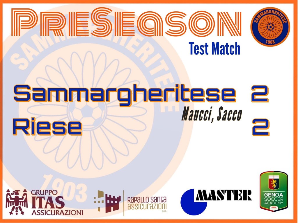 🔎Si è svolta ieri sera al “Broccardi” la terza uscita amichevole dei nostri Arancioni contro la Riese, formazione molto attrezzata e di valore che si appresta ad affrontare il campionato di Prima Categoria. Buon test per i ragazzi di Mister Giacobbe nonostante i carichi di lavoro in vista dell’inizio del Campionato. Primo tempo chiuso in svantaggio per 0-1, mentre nella ripresa il gol di Maucci di testa e l’euro gol di Sacco, ribaltano il risultato parziale. Il pareggio ospite allo scadere sancisce il definitivo 2-2.