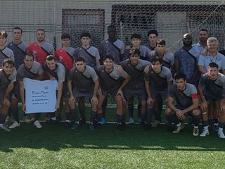 Nella foto qui in alto, la Superba omaggia il suo giocatore Tecchiati (classe 1999), appena operato al menisco.
