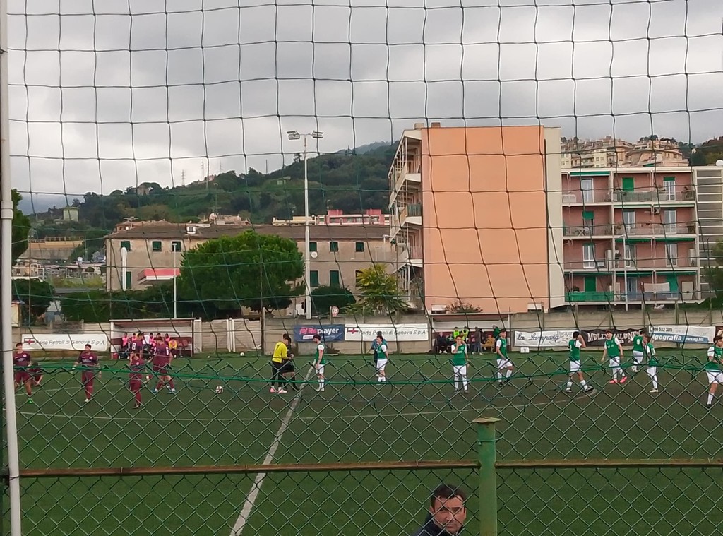 22' bella azione di Rocchi del Multedo che salta il portiere si allarga crossa in mezzo per Della Rossa che di testa impegna il bravo Calizzano