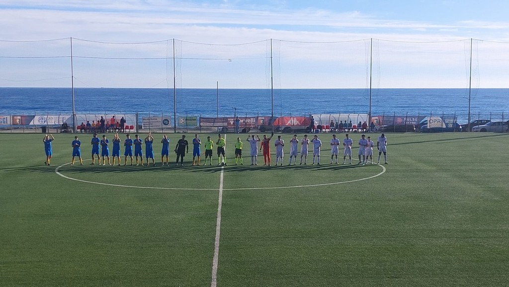 2’ partenza sprint del San Francesco Loano con Cauteruccio che impegna Ghio con una conclusione al volo da fuori area