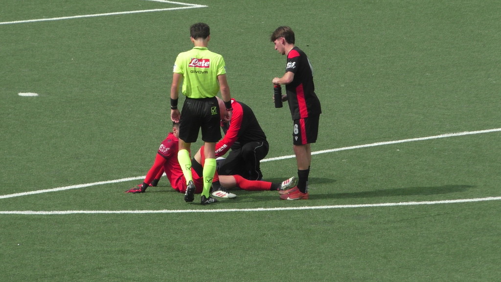 Nella foto soccorsi a Jacopo Stano durante il match